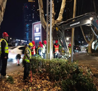 園林集團黨委自接到移植任務(wù)起,一是多次到項目現場(chǎng)調研,與相關(guān)單位反復論證,結合長(cháng)江路法梧保護、交通通行、管線(xiàn)保護、周邊建筑和居民正常生活保障等多種因素,不斷優(yōu)化移植方案。二是選派優(yōu)秀黨員和業(yè)務(wù)骨干為移植施工現場(chǎng)責任管理人員,明確工作任務(wù),克服起挖管線(xiàn)復雜、施工面小、冠幅回縮難度大的困難,集中力量、創(chuàng )造施工條件,攻堅克難。本次集中移植行動(dòng)現場(chǎng)總計安排高空作業(yè)車(chē)3臺,挖機11臺,吊車(chē)10臺,隨車(chē)吊15臺、貨車(chē)13輛,投入黨員、職工200人次,最終順利完成移植,保障了長(cháng)江路下穿工程項目建設進(jìn)度。