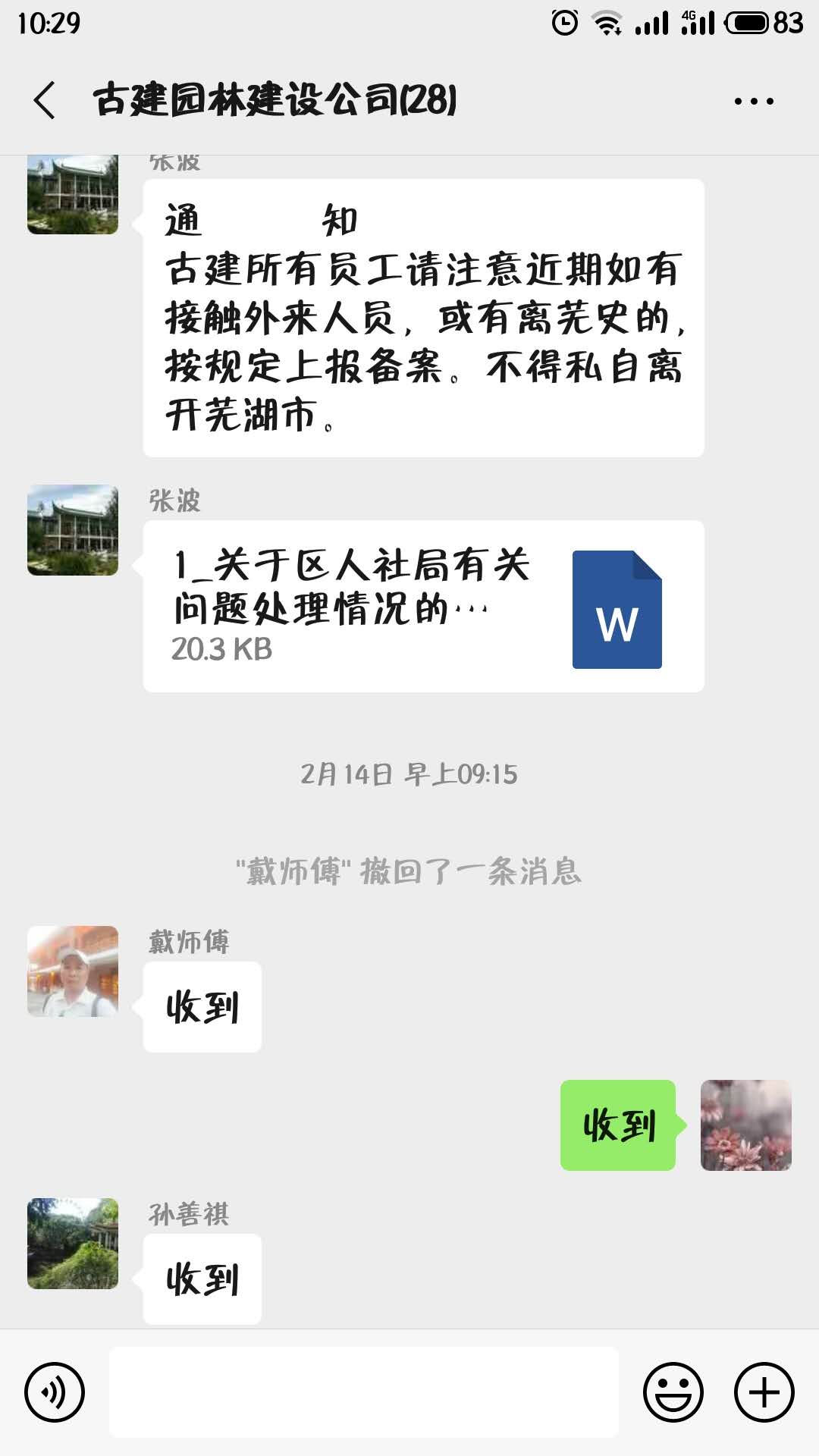古建公司每日值班領(lǐng)導對當日疫情防控工作負責,認真做好值班值守工作,保證通訊24小時(shí)暢通。加強信息報送。