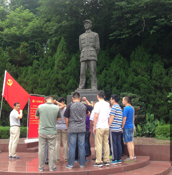 城宜園林公司黨支部在王家祥紀念像前重溫入黨誓詞