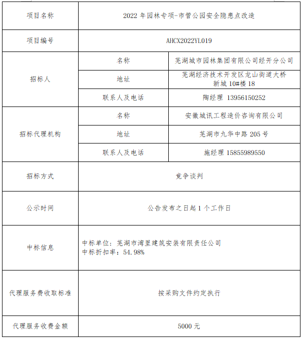 2022年園林專(zhuān)項-市管公園安全隱患點(diǎn)改造 中標公告