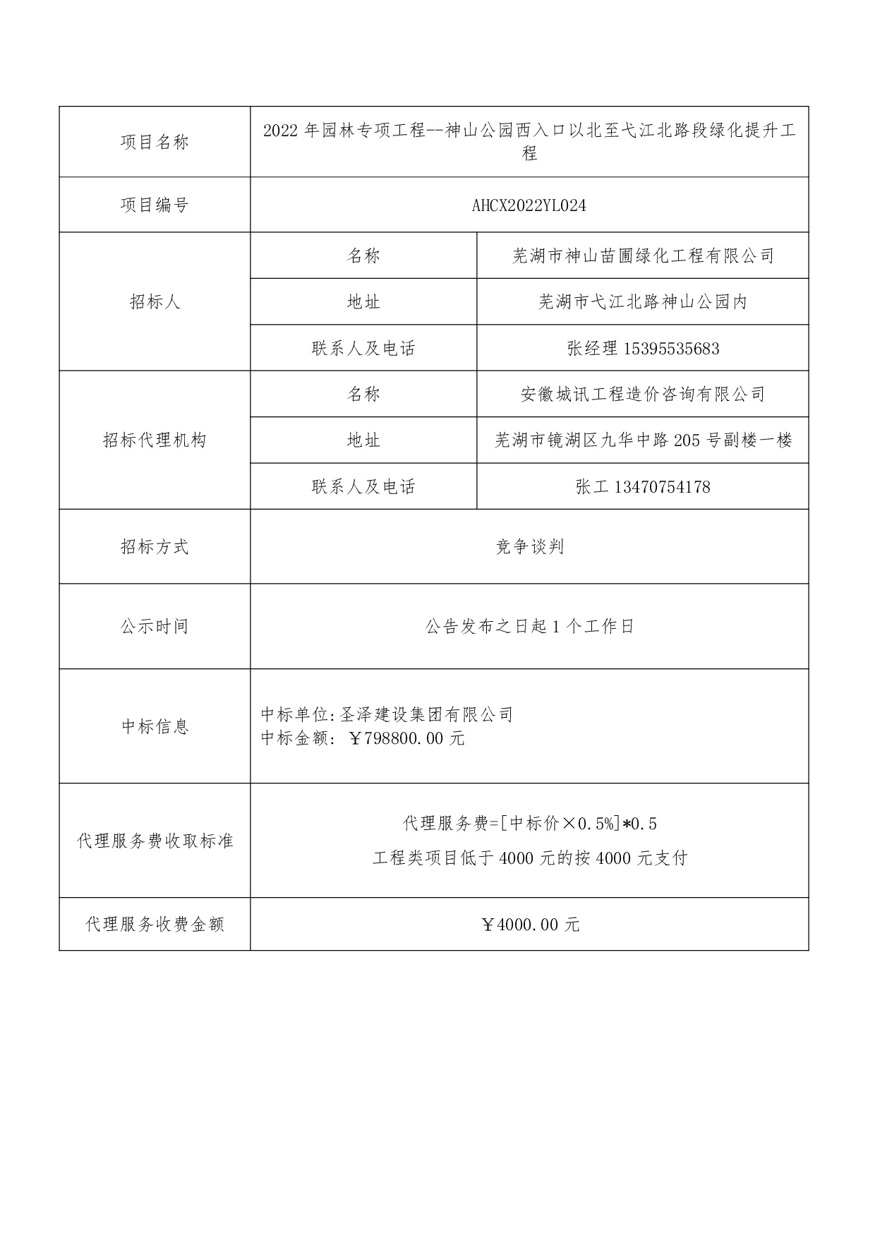 2022年園林專(zhuān)項工程--神山公園西入口以北至弋江北路段綠化提升工程中標