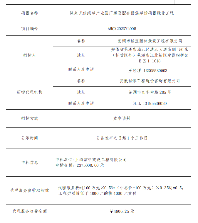 隆基光伏組建產(chǎn)業(yè)園廠(chǎng)房及配套設施建設項目綠化工程中標結果公示