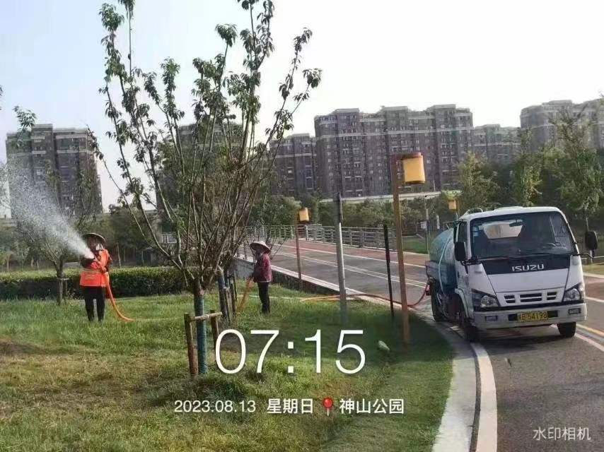 為最大限度的保證綠化苗木成活率,園林集團組織綠化養護人員積極開(kāi)展抗旱澆水工作,澆水采取人工作業(yè)和機械作業(yè)相結合,利用水車(chē)、消防栓等設備,使用澆灌、噴灌等多種形式,每日早4點(diǎn)到10點(diǎn),下午4點(diǎn)夜間12點(diǎn)對城市主干道綠化帶及公園、廣場(chǎng)苗木進(jìn)行全域澆灌。