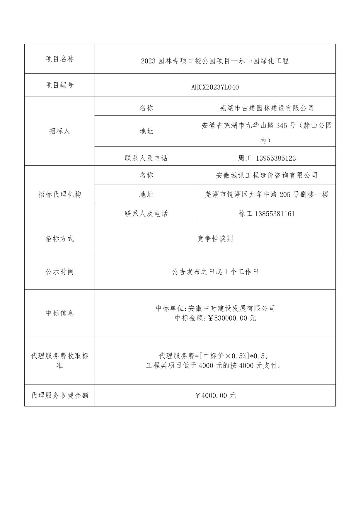 2023園林專(zhuān)項口袋公園項目—樂(lè )山園綠化工程中標結果公示