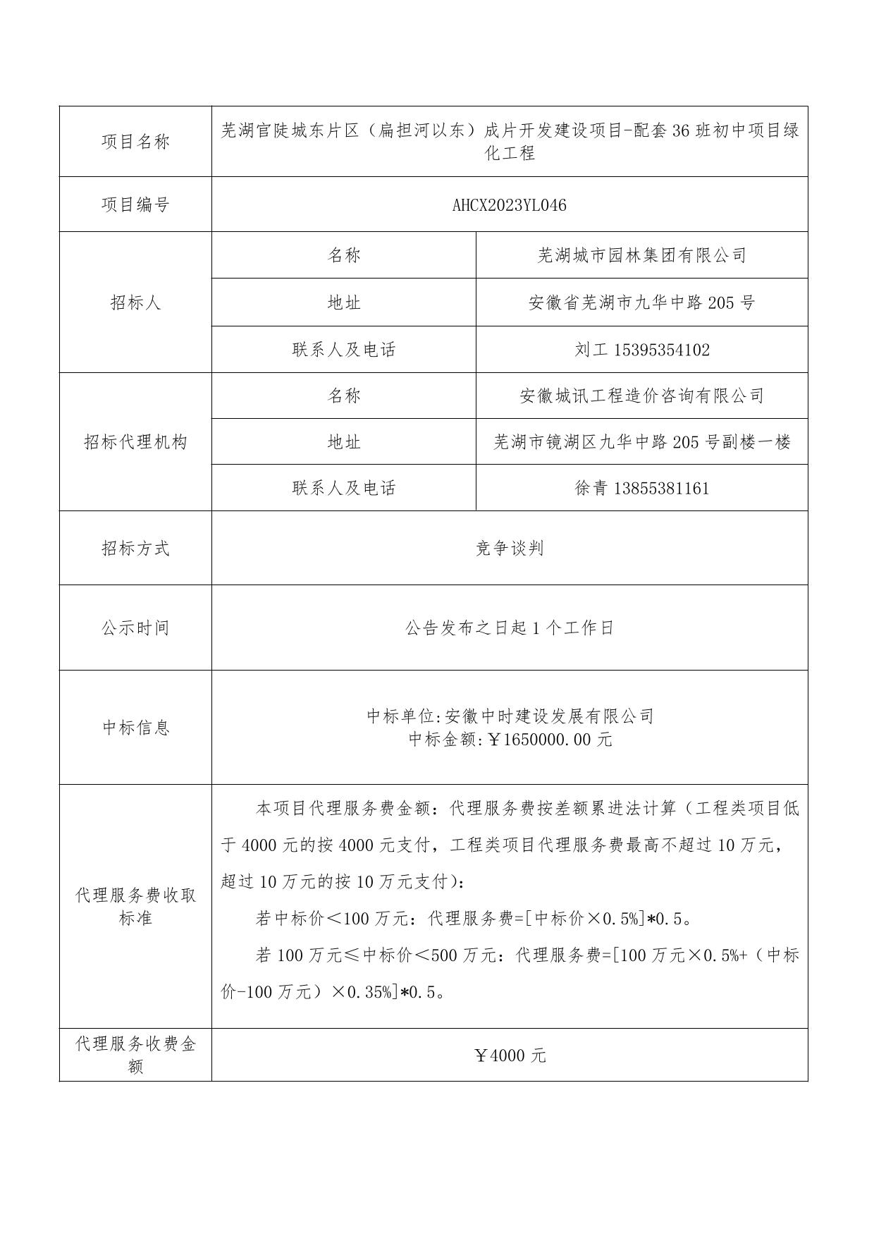蕪湖官陡城東片區(扁擔河以東)成片開(kāi)發(fā)建設項目-配套36班初中項目綠化工...