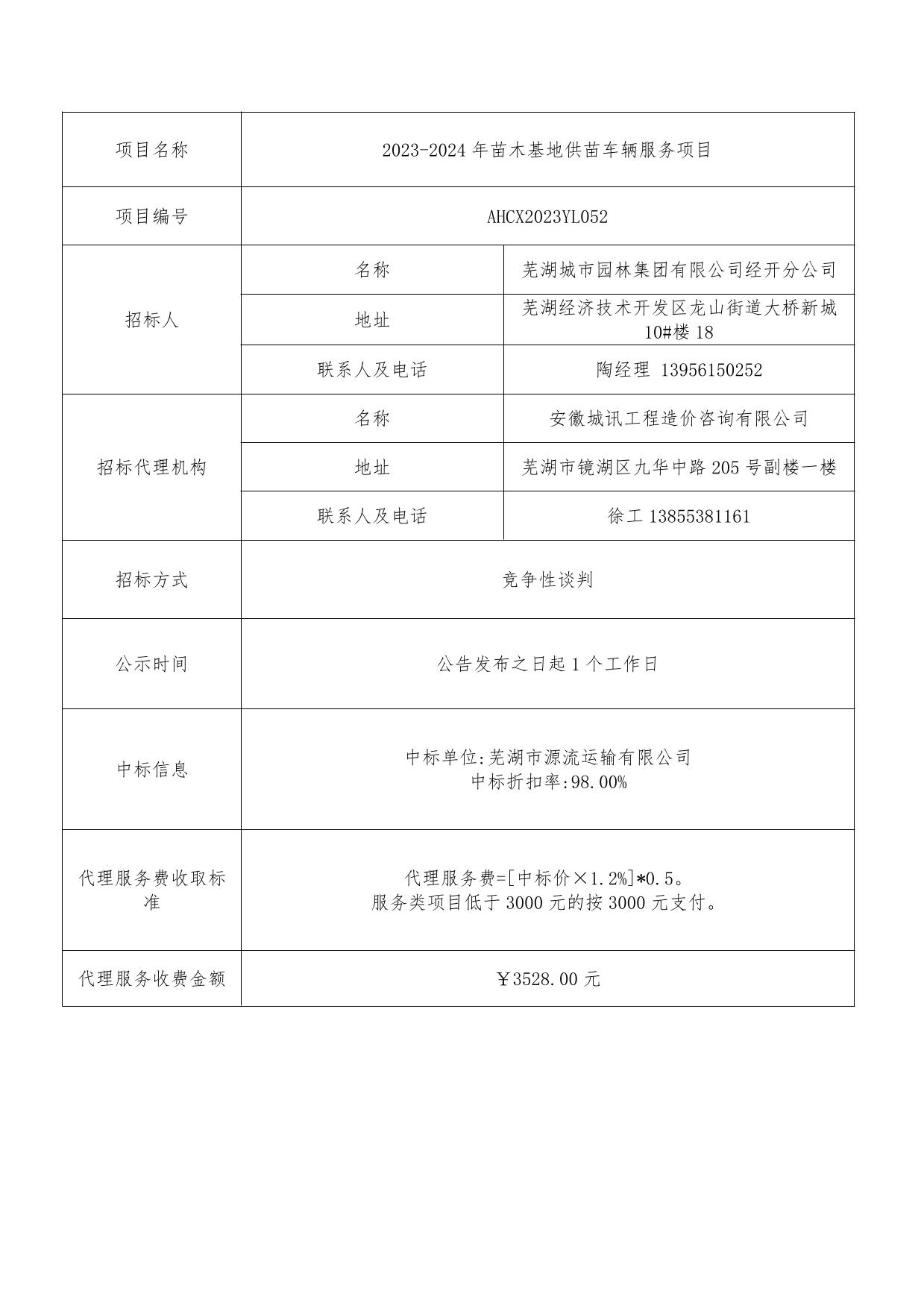 2023-2024年苗木基地供苗車(chē)輛服務(wù)項目中標結果公示