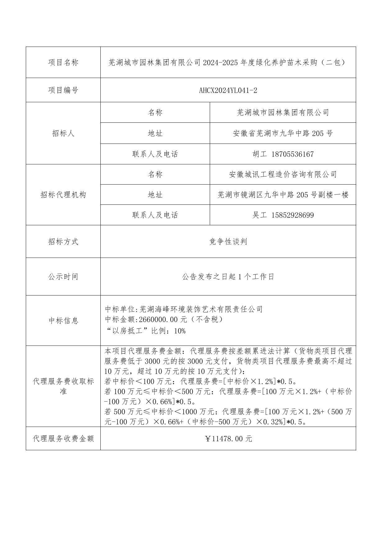 蕪湖城市園林集團有限公司2024-2025年度綠化養護苗木采購(二包)成